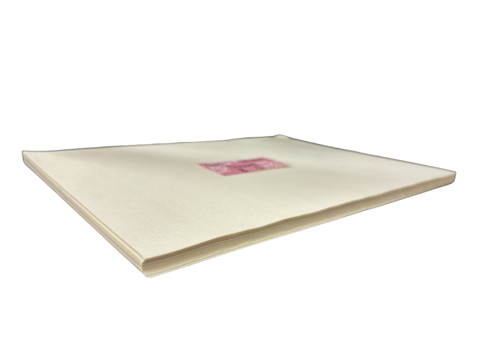 The 'Shosen' Hanshi paper features a machine-made texture that mimics traditional handmade paper, ensuring excellent sumi ink absorption with minimal bleeding.