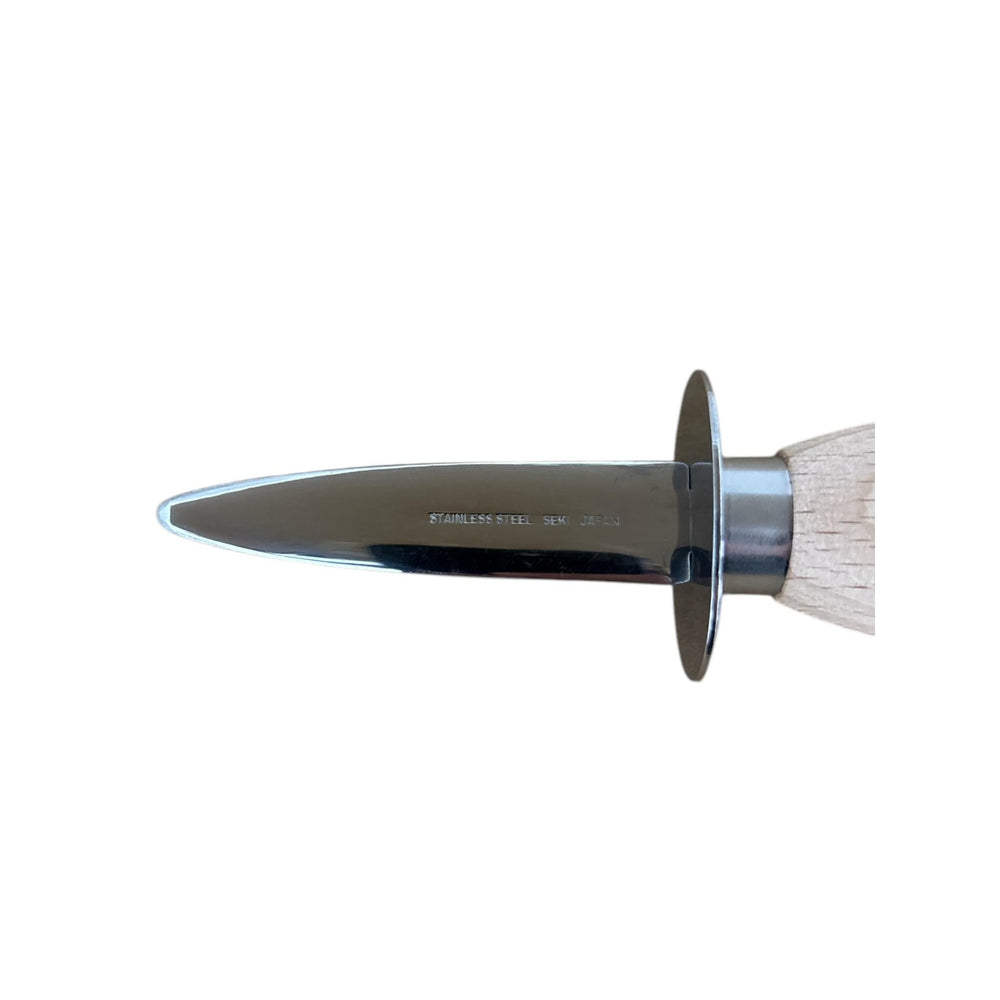 This oyster knife made by renowned Seki Kanetsugu in Seki, Japan, features a thick, rounded blade made of high-grade stainless steel, so it will not get damaged when shucking an oyster. The round, ergonically-designed beech wooden handle allows the oyster knife to be used for a prolonged period of time without fatigue, so it's suitable for both business and home use.