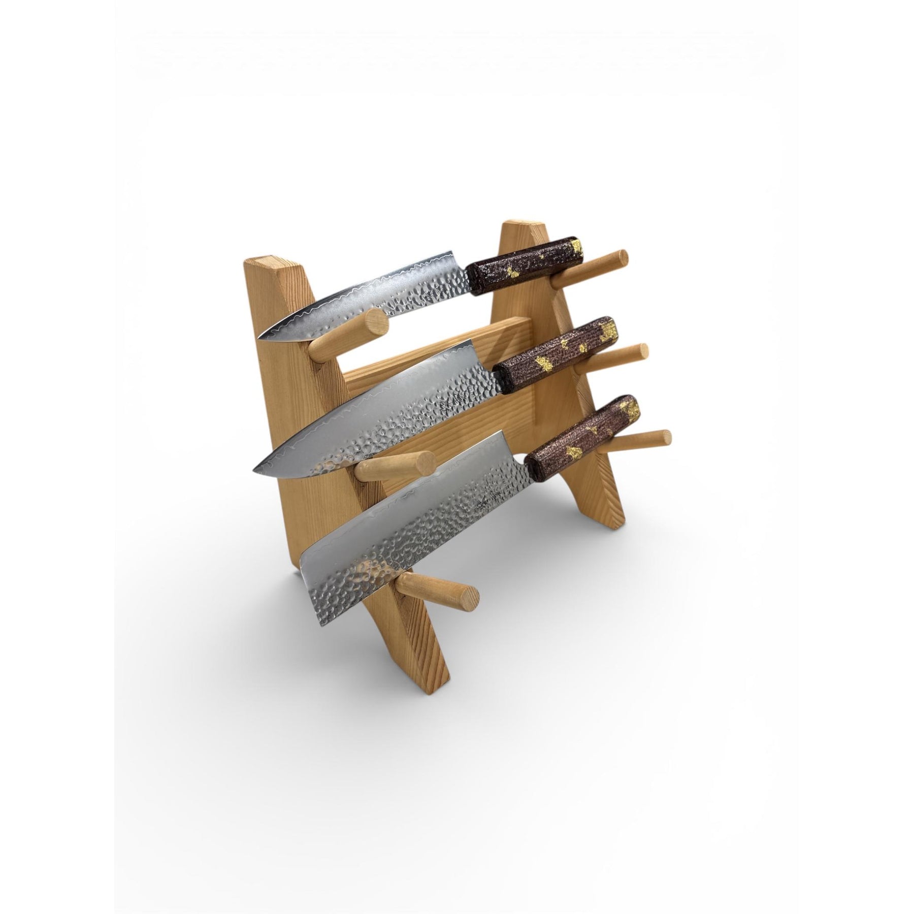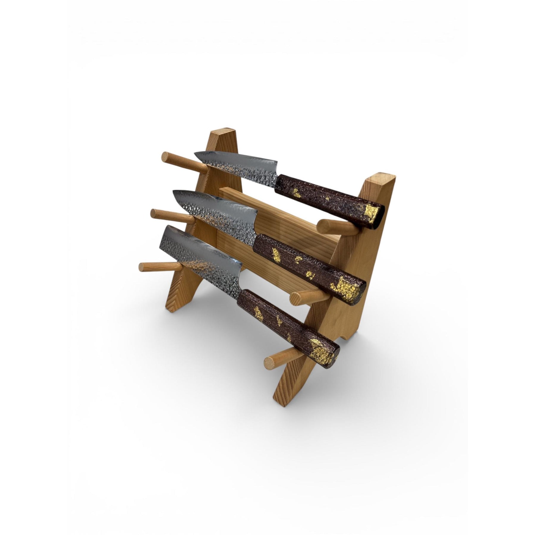 PLEASE NOTE: NO STAND IS INCLUDED, ONLY THE 3 KNIVES.