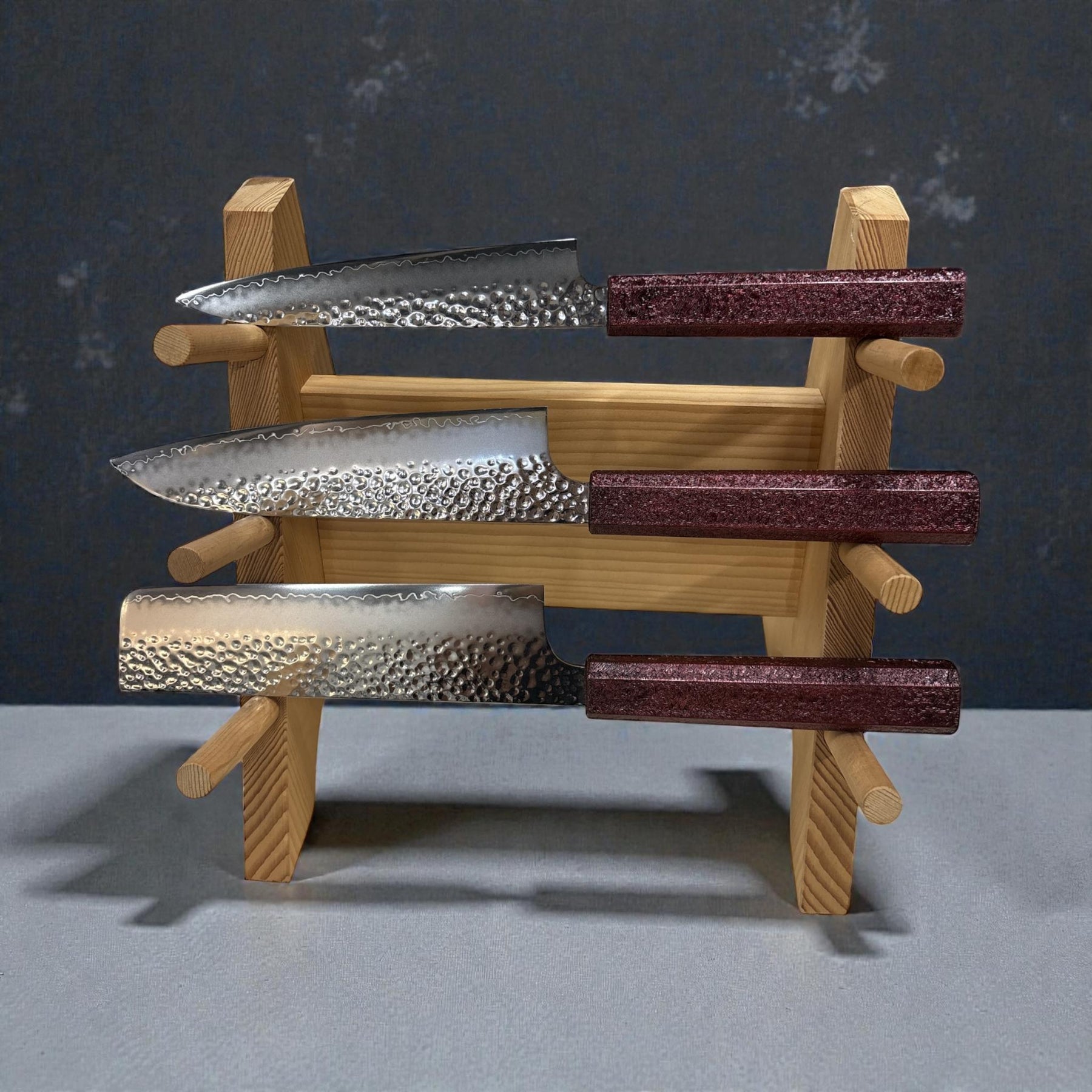 PLEASE NOTE: NO STAND IS INCLUDED, ONLY THE 3 KNIVES.