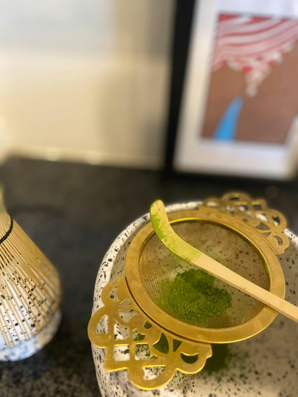 1. Sift 1–2 grams (approximately 1–2 chashaku scoops) of matcha powder into a chawan/bowl.