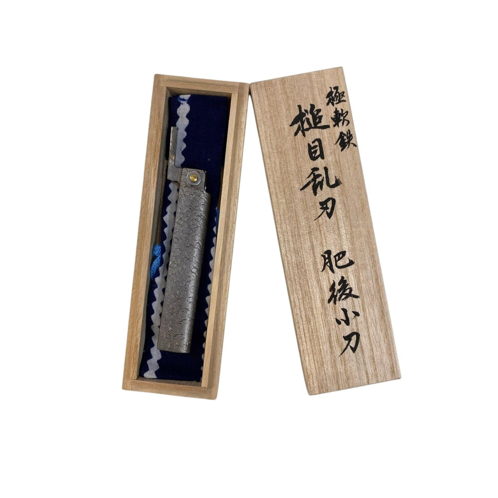 These sought-after limited edition folding pocket knives - similar to our Higonokami - are made by the late Tomita Osamu. Mr Tomita used Shirogami white paper cutlery steel to make the blades, with the handle made from wrought iron, making this an extremely durable pocket knife that will last a life-time in any condition.