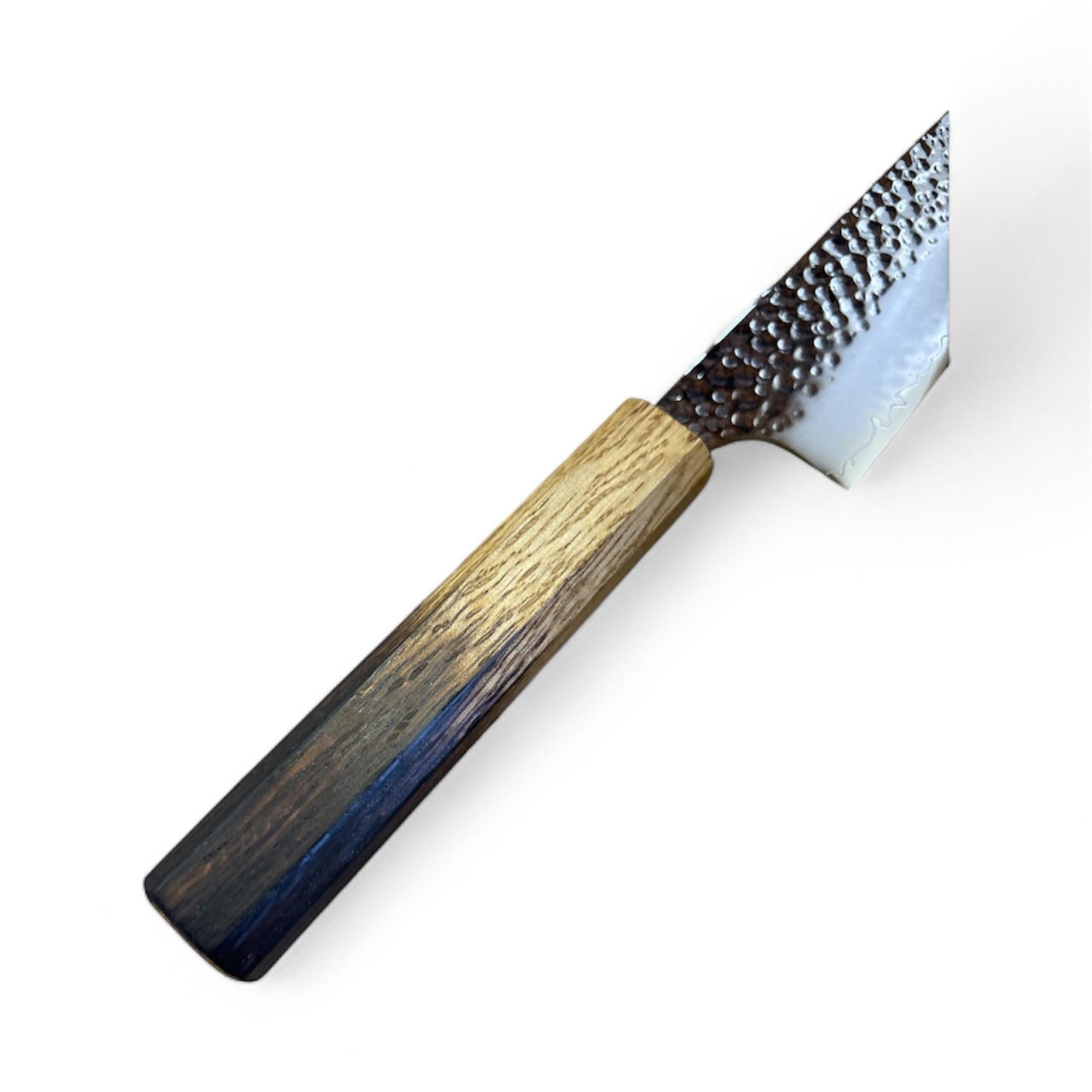 The handle material is made of domestic oak wood and is octagonal, making it easy to grip. You can choose your favourite combination from four different handles of each size. The blade has a hammered pattern that reflects traditional knife-smithing techniques and has a high blade separation effect, so you can enjoy both appearance and functionality.